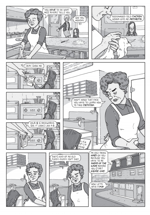 Throughout Chicken Rising, there are several competing emotional themes. One is that Boyd was a strong-willed child who bucked against authority. She had a well-formed sense of justice and often felt she's the aggrieved party but was never believed. At the same time, she spent most of her time with her parents and wanted nothing more than to please them. Her mother belittled Boyd's choices for careers and simultaneously criticized her for not having any friends while later criticizing the friends she made. Her mom encouraged her to not be shy while warning her against any activity with the slightest bit of danger, like riding a bicycle. Boyd shows all this with no retrospective narrative captions emphasizing this behavior; instead, she simply lets it unfold over time and slowly lets the reader in on her life and its general weirdness.